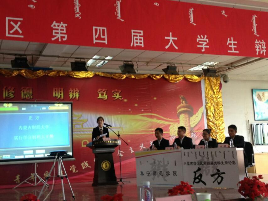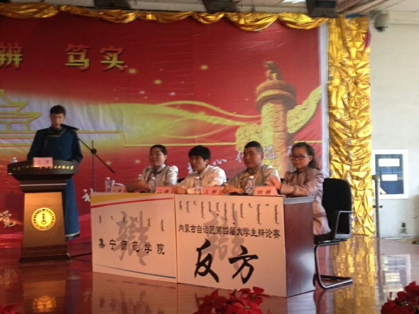 第四届全区大学生辩论赛于5月20日—21日在内蒙古师范大学举行,PP电子游戏官网由蒙文系学生乌永嘎、宝音朝格图、白晓峰、苏伦高娃、斯琴格日乐组成的蒙语组代表队和中文系学生宋文帅、柳珮、薛然、张明与数学系学生程野组成本科组代表队参加本次大赛。