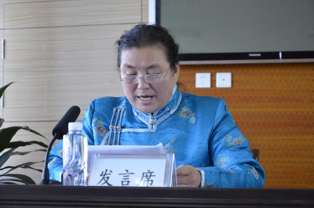 蒙文系主任南斯力玛在会上发言。她介绍了PP电子游戏平台网站蒙文系蒙语教学工作的发展历程和办学成就,蒙文教学工作的“十三五”规划。