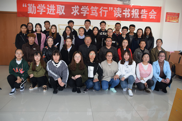 教师评委李林书、张殿有、弓建国、王富高、陈娜日苏及学生评委校学习部的学生对此次报告会进行点评。王富高还对参赛选手的表现做了点评。评委为获奖选手颁发证书并合影留念。
