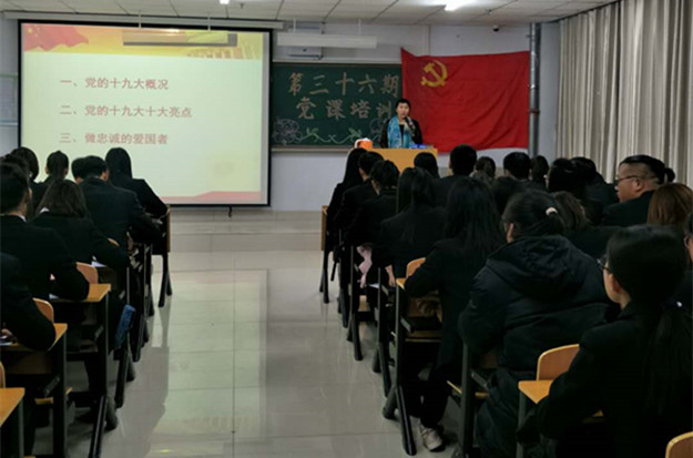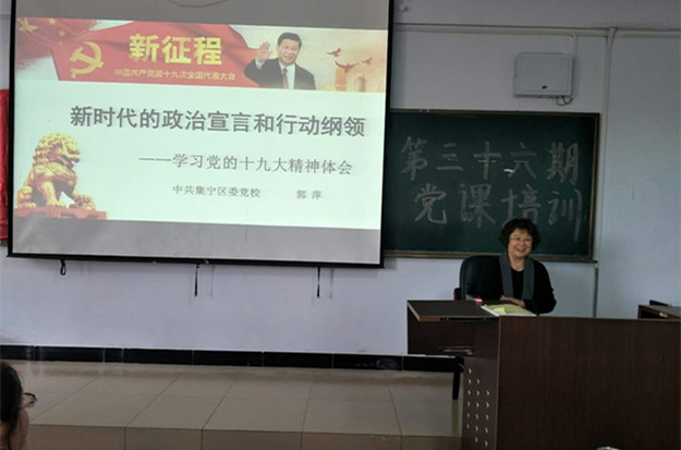 本期培训分别邀请到了思政部教师晓荣、组织统战部科长唐学明、乌兰察布市集宁区党校副校长郭萍为全体学员们作了《践行十九大精神,做忠诚的爱国者》、《树立远大理想,做新时代有为青年》、《新时代的政治宣言和行动纲领--学习党的十九大精神体会》、《入党流程和要求》等专题讲座。培训中还组织学员观看了《榜样》,并到学校学生食堂、网教楼机房、学生宿舍楼附近开展了“建设和谐校园,清洁你我家”义务劳动。最终,124名学员全部顺利通过了考核并结业。