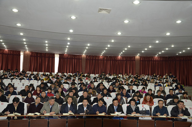 党委理论学习中心组成员,全校副处级以上干部,各系(院)团总支书记、学工办主任,教学班班主任代表及学生代表共400多人参加。