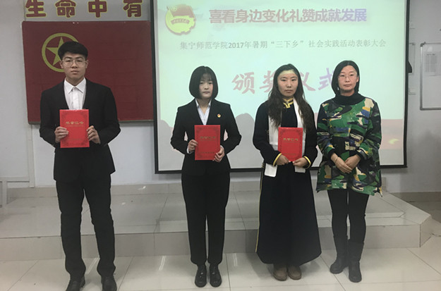 2017年“暑期三下乡”团队类别主要包括:红色革命教育基地学习观摩团、亮丽内蒙古成就分享展示团、理论普及宣讲团、依法治国宣讲团、科技支农支牧、教育关爱服务团、文化艺术服务团,深入10多个盟市、旗县、嘎查。表彰会上,来自各院团总支的15支服务队分别详细介绍了暑期“三下乡”所开展的社会实践活动,阐述了在社会实践活动的体验与收获,以及发现的社会问题并作出了相应的思考。