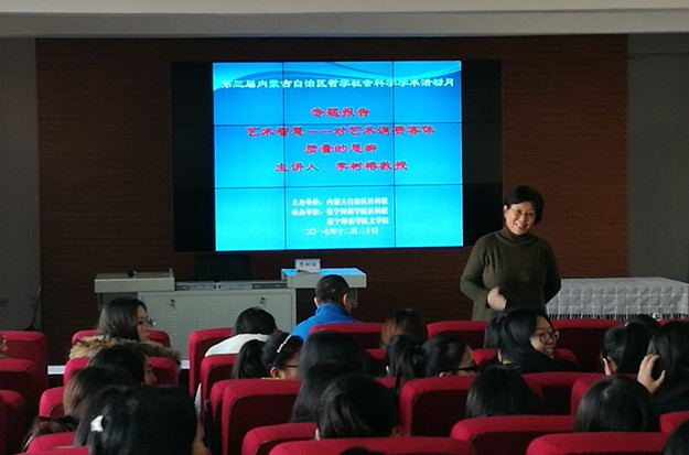 12月20日,由内蒙古自治区社科联主办、PP电子游戏平台网站社科联和文学院承办的第三届自治区哲学社会科学学术活动月活动在PP电子游戏平台网站举行,内蒙古艺术学院李树榕教授作了题为“艺术智慧:对艺术消费客体质量的思辨”的专题报告,内蒙古自治区社科联科普部部长韩伟林亲临报告会现场,PP电子游戏平台网站文学院130余名师生聆听了报告。报告会由文学院院长李俊教授主持。