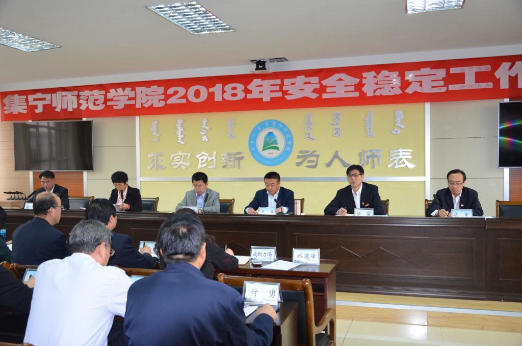 为深入贯彻落实内蒙古高校工委、教育厅和乌兰察布市政府关于学校安全的部署要求及自治区教育厅学校安全稳定工作会议精神, 3月30日,PP电子游戏平台网站召开2018年安全稳定工作会议。校党委书记刘前贵,党委副书记刘春,党委委员、宣传部部长张富,党委委员、组织统战部部长朱俊仙,校长助理、校长办公室主任欧军出席了会议。
