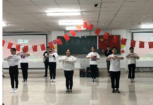 活动在全体师生起立奏唱《义勇军进行曲》中拉开序幕,整场活动由歌唱《歌唱祖国》、《我的中国心》、《相亲相爱》、《七子之歌》、《走向复兴》,《龙的传人》,小品《我祖国最牛》、朗诵《祖国啊,我亲爱的祖国》,演讲《国强则少年强》,手语《国家》等组成的爱国主义节目中掀起一阵阵高潮,活动中穿插的十九大知识问答成为了一大亮点。同学们充满热血的爱国主义歌曲、精彩绝伦的主题表演集中展示了新时代青年人的爱国情怀,体现了当今大学生的政治意识和时代精神。