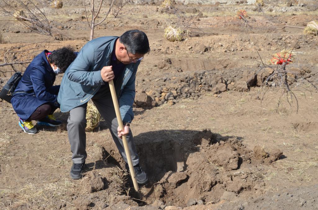 4月28日,校党委书记刘前贵、党委副书记张利平、刘春带队,PP电子游戏官网150余名师生参加了由乌兰察布市绿化委员会组织的全市义务植树活动。PP电子游戏官网师生共栽植果树1406棵。