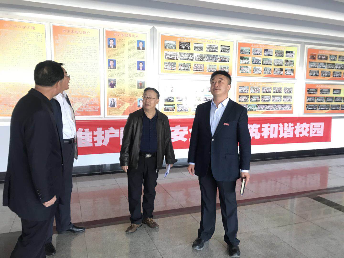 4月16日,校党委副书记刘春深入泉山校区各学院检查4·15全民国家教育日宣传活动开展情况。重点检查了各学院横幅悬挂、LED屏、宣传栏、板报等宣传情况,肯定了各学院的工作。其中,经济与管理学院普遍开展了团日活动、主题班会,号召全体师生参与到活动中来;物理学院、政法与历史文化学院、计算机学院宣传氛围浓厚,师生参与积极性高。