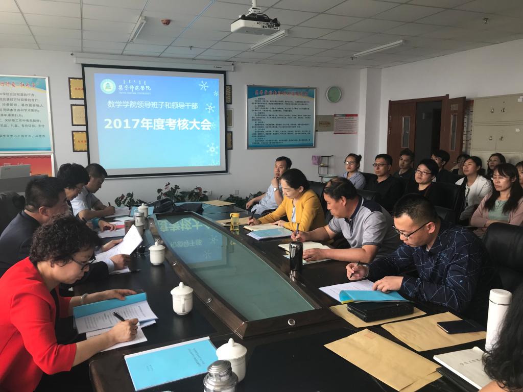 按照校党委的安排部署,数学学院于5月9日召开2017年度领导班子和领导干部考核大会。学校第二考核组组长、党委副书记刘春,组织统战部部长朱俊仙,考核组成员李海、陈霞一行四人深入数学学院对院领导班子和领导干部2017年度工作进行实绩考核。数学学院全体教职工参加了会议。