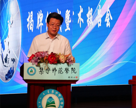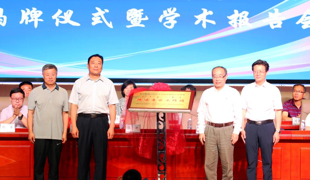 在全场热烈的掌声中,张泽院士、闫伟副主席、苏和副市长、朱玉东校长为院士站成立揭牌。