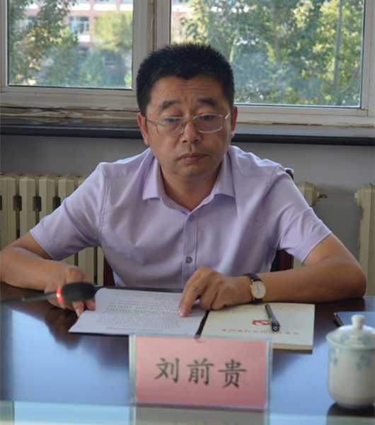刘前贵要求,我们要认真学习领会精神实质,要在全校认真开展学习习近平总书记的重要讲话精神,在全校掀起学习热潮,把思想和行动统一到讲话精神上来,结合学校实际,学习好、贯彻好总书记重要讲话精神,学深悟透,以知促行,全力以赴抓好各项任务落实。把我们学校发展好,把中国特色社会主义事业的建设者接班人按照总书记的希望和要求培养好。