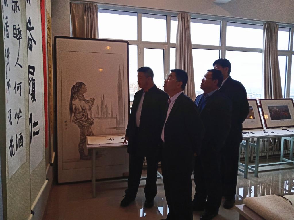 校领导一行与现场的老师和同学们共同欣赏了书画作品,相互交流了对作品的见解和感悟。观展者纷纷对本次活动表示赞扬,对所展示的书画作品给予高度的评价。