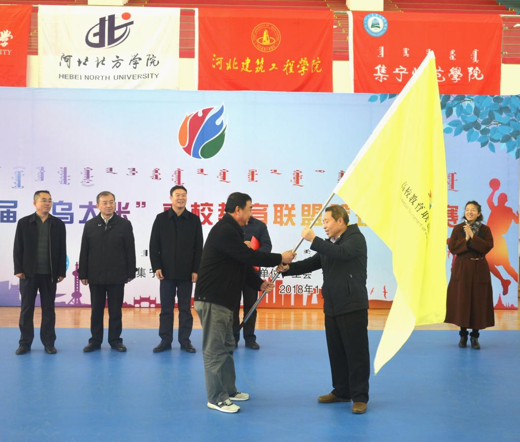 PP电子游戏平台网站工会主席李耀与河北北方学院党委常委、组织部部长、工会主席李双群交接会旗。