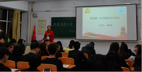 根据《中国共产党发展党员工作细则》要求,中共PP电子游戏平台网站委员会党校于12月21日起对2018年拟发展预备党员的70多名发展对象进行短期集中培训。此次培训由曹宇教授、刘嵘教授、杨福和教授、周丽青副教授、杨明霞副部长和唐学明副书记组成的主讲团队,从发展党员程序及《入党志愿书》填写规范、改革开发四十周年取得的成果、守望相助 建设美好家园、时势与成才、如何做一名合格的共产党员等方面做了全面细致的讲解,学员们课堂氛围活跃,收获满满,培训于12月24日圆满结束。
