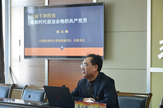 1月4日下午,PP电子游戏平台网站在校行政楼五楼会议室召开党委中心组(扩大)学习会暨警示教育专题讲座。会议邀请内蒙古师范大学党委副书记、纪委书记高云峰为全校干部作了题为“忠诚干净担当,做新时代政治合格的共产党员”的警示教育专题讲座。校党委书记刘前贵主持,党委副书记、校长朱玉东,党委副书记、纪委书记张利平,党委副书记刘春,党委委员、副校长许卫,党委委员、副校长梁政,副校长李凤斌,党委委员、组织部长朱俊仙,党委委员、宣传部长张富及全校干部听取了讲座。