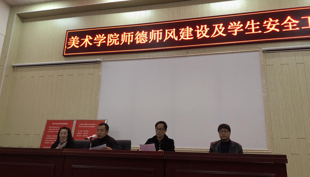 会上,焦俊亮宣读了《美术学院关于进一步加强师德师风建设的实施意见》,《争当“四有”好老师,做学生成才的引路人——致全体教师倡议书》和《美术学院关于2019年学生安全教育管理工作的指导意见》,让每一位教师认识到师德师风及学生安全教育工作的重要性,增强教师的责任感和使命感。