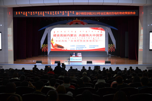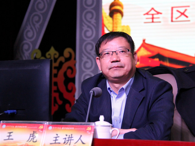 党委书记刘前贵主持报告会。内蒙古自治区党校(行政学院)教务处处长王虎教授作形势政策报告。