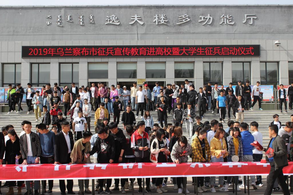 在中国人民解放军军歌中,全市大学生征兵启动仪式圆满结束。会后,积极应征入伍的同学们在会场门口进行了以“莘莘学子携笔从戎、参军报国无上光荣”为主题的志愿签名活动。乌兰察布军分区和集宁区人民武装部安排专人对预征入伍同学们所提出的疑惑给予了详细的解答,并对大学生参军入伍的优惠政策进行充分解读。同时发放了《2019年乌兰察布市大学生参军入伍优惠政策宣传手册》。