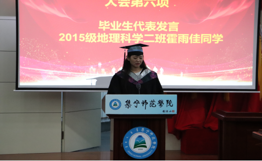 毕业生代表寄托了学生对老师的感恩和对母校的留恋发言,四年大学时光,转瞬即逝,带走的是岁月,却带不走深深的师生情意,老师,同学,母校将永远铭记于心,成为人生路上最亲切的怀恋。在校生代表为即将毕业的学长学姐们送上了最真挚的祝福,希望她们在今后广阔的社会舞台上,尽情挥洒智慧,成为不平凡的自己。
