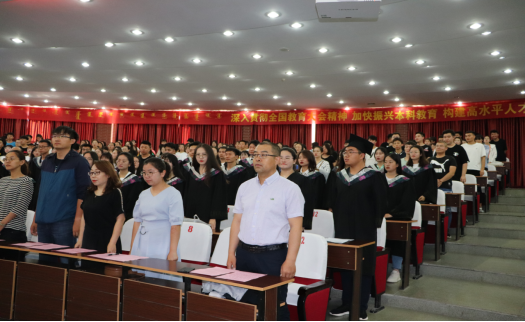 毕业典礼在激昂的国歌中拉开了序幕。首先由暴向平老师宣读2019届本科毕业生名单,赵娜老师宣读了2019届毕业生考研上线名单、考取教师名单、考取内蒙古选调生名单、考取西部计划学生名单,黄倩老师宣读了2019年获得自治区级“三好学生、优秀学生干部、优秀毕业生”名单。