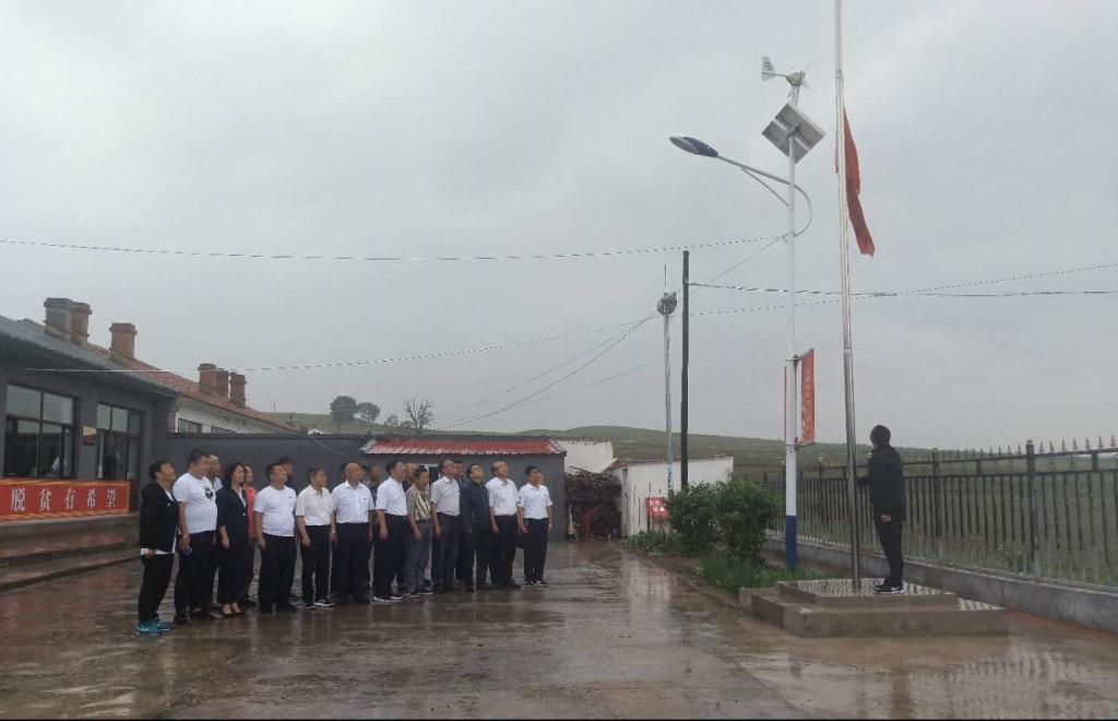 PP电子游戏平台网站后勤基建处党总支全体党员与十八台镇金城洼村党支部全体党员,在金城洼村党员活动室召开了座谈会。金城洼村72岁的老支部书记回顾了该村的光荣历史和党建工作开展情况,详细介绍了村里的长期发展规划以及正在启动的一些重大产业项目,介绍了自治区书记李纪恒同志来村里视察的情况。同时双方就乡村振兴、脱贫攻坚、支部建设、高校服务地方等话题进行了交流,随后,后勤基建处党总支全体党员与十八台镇金城洼村党支部全体党员在金城洼村广场冒雨共同举行“升国旗”活动,在激昂的国歌声中,全体党员在雨中肃立仰望党旗高唱国歌,用歌声表达对党的忠诚,对党的热爱。