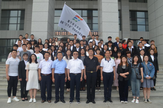 刘春在启动仪式上为暑期“三下乡”社会实践服务队授旗,并预祝2019年暑期“三下乡”社会实践活动取得圆满成功。
