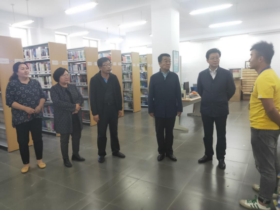 8月28日,PP电子游戏平台网站党委副书记、校长朱玉东,党委委员、副校长许卫深入图书馆指导检查开学各项工作的运行情况。图书馆党总支书记海棠、馆长宋勤、副馆长高娃等陪同。