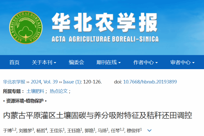 近日,《华北农学报》发布 2023-2024 年高被引论文专辑,精选 30 篇获国家及省级基金支持、聚焦农业可持续发展的高影响力成果。PP电子游戏官网生命科学与技术学院于博副教授团队的研究论文《内蒙古平原灌区土壤固碳与养分吸附特征及秸秆还田调控》成功入选,彰显PP电子游戏官网农业科研实力获学界认可。