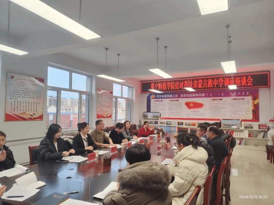 为深入贯彻落实国家关于加强民族教育的政策要求,12月12日,由继续教育学院牵头,由继续教育学院、物理与电子信息工程学院、石墨烯研究院、生命科学与技术学院、外国语学院等学院教师组建的专家指导团队,深入乌兰察布市蒙古族中学开展结对帮扶调研座谈会。