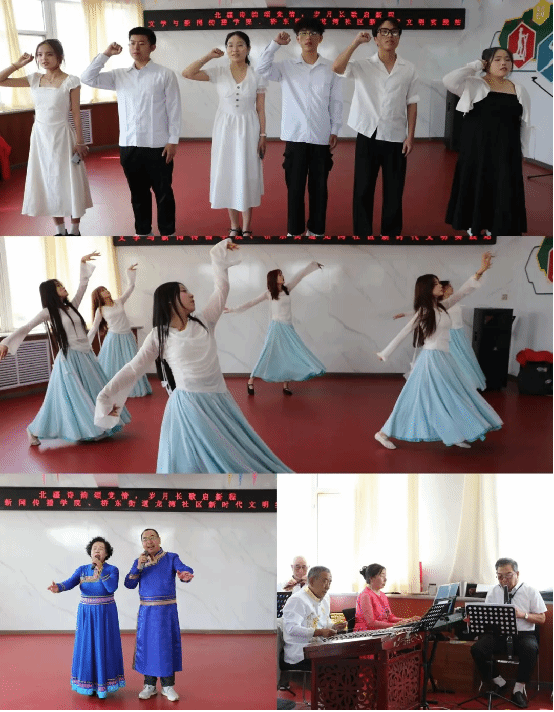 文学与新闻传播学院与龙湾社区以艺术为纽带,通过多种艺术形式,深情回顾党的光辉历程。舞蹈《浮光》、朗诵《觉醒年代》、歌曲《祝福祖国》、《远方的书信乘风来》等节目轮番上演,展现了祖国的大好河山与民族风情。