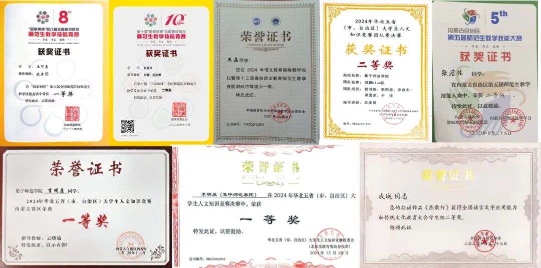 图13 学生获奖证书(部分)