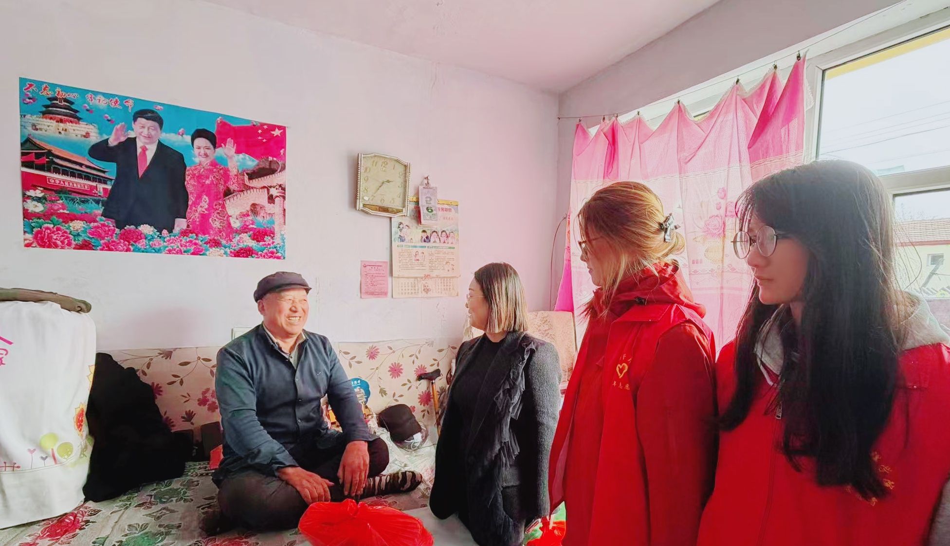 PP电子游戏官网师生代表与化德县政府副县长苗雯娟、村“两委”干部一同开展走访慰问,为困难群众送上慰问品,详细询问其身体状况、生活需求及实际困难,鼓励他们坚定信心,依靠政策支持与自身努力改善生活。