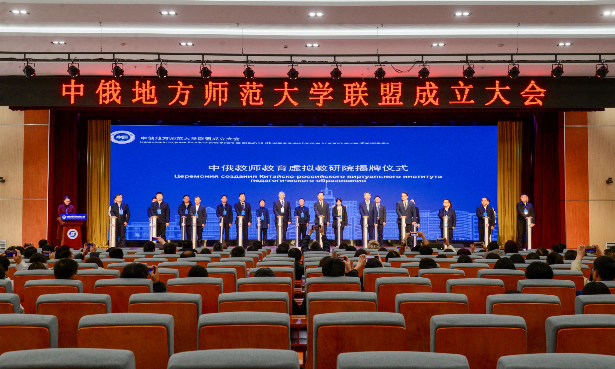 在大会预备会议上,审议通过了联盟章程(草案),李凤斌当选联盟第一届理事会副理事长,为学校参与联盟建设、深化对俄师范教育合作奠定了坚实基础。大会现场还举行了中俄地方师范大学联盟、中俄教师教育虚拟研究院、中俄乡村教育研究团队院士工作室揭牌仪式,三项平台的搭建为后续合作提供了重要支撑。