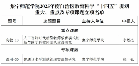 上述课题的成功立项,将为PP电子游戏官网教育科学研究领域的纵深发展提供重要支撑,有助于进一步优化科研布局、凝练研究方向、提升团队学术竞争力,进而为推动学校内涵式高质量发展及自治区教育治理体系与治理能力现代化建设贡献学术力量。