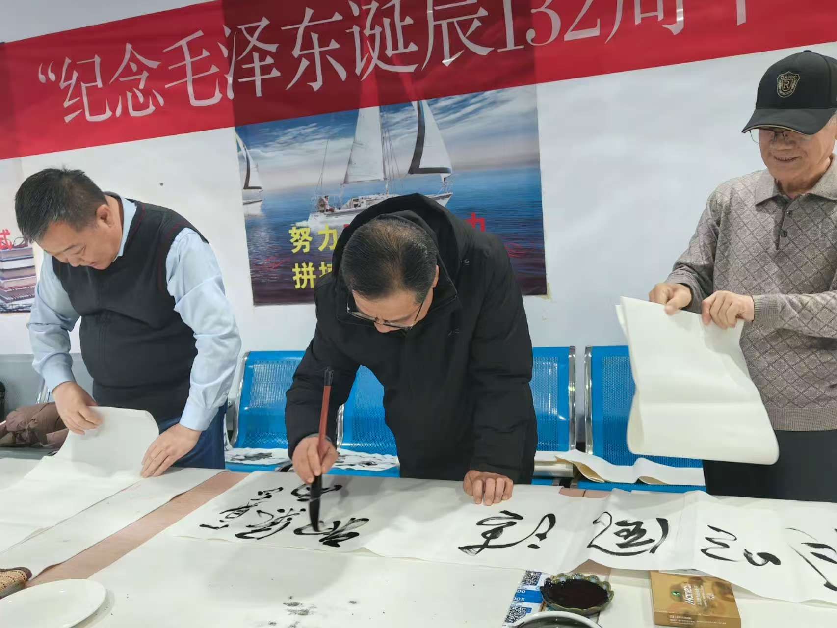 本次笔会以“毛泽东诗词、革命事迹、精神风貌”为创作主题。活动现场,墨香氤氲,《沁园春·雪》的磅礴气势、《七律·长征》的坚毅意志,井冈山会师、延安灯火等重现革命场景,真草隶篆各展风采,每一幅作品都倾注着对伟人的崇敬与对伟大祖国的深情热爱。