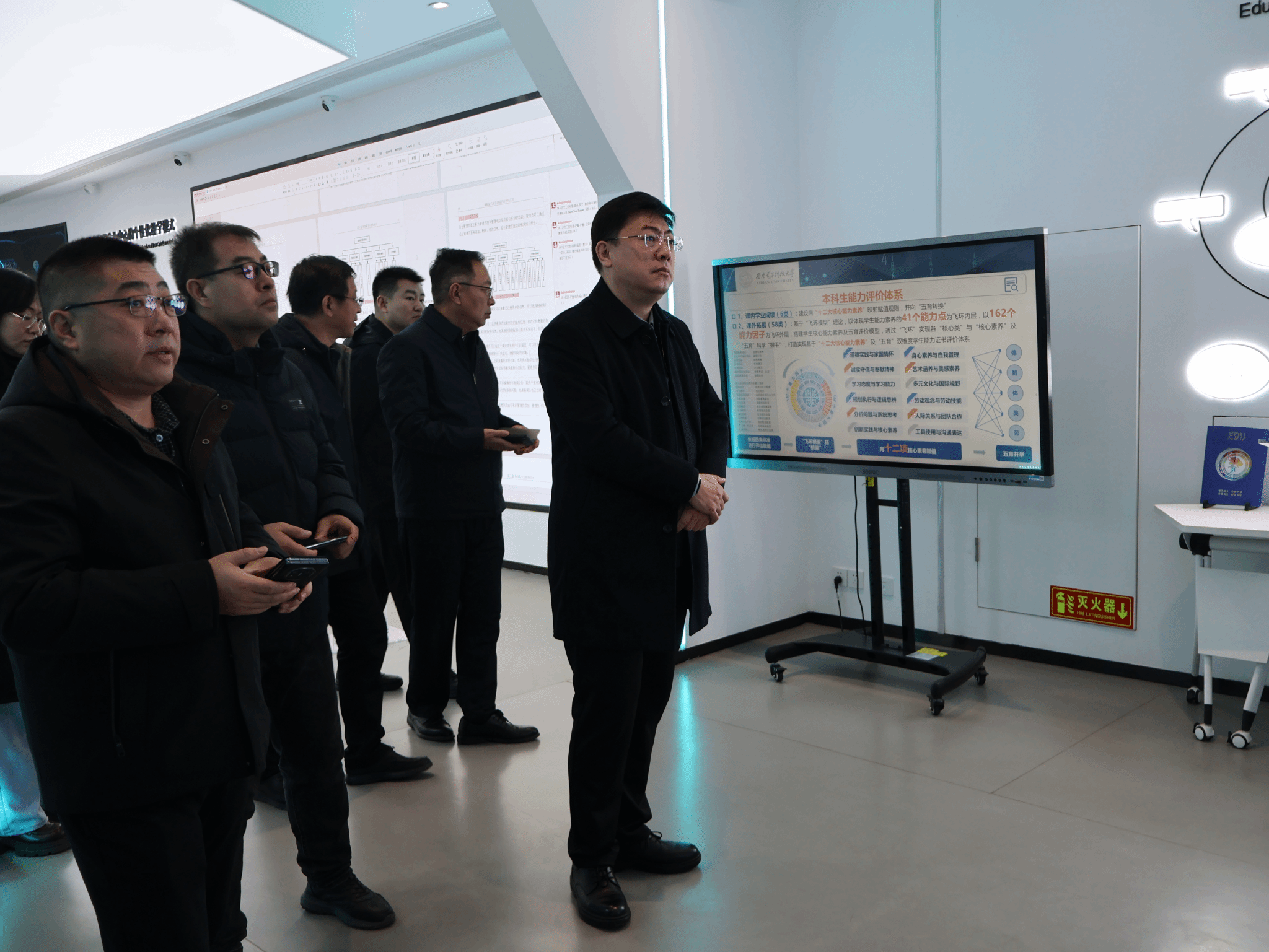 12月22日上午,调研组赴西安电子科技大学,围绕AI赋能教育科技人才一体化推进开展考察。西安电子科技大学副校长王泉介绍该校教育数字化转型及AI技术教育应用经验,调研组就高校教学、科研、师生服务等AI场景应用与相关专家进行学习交流,并重点考察了该校自主建设运行的“汇通”大模型。