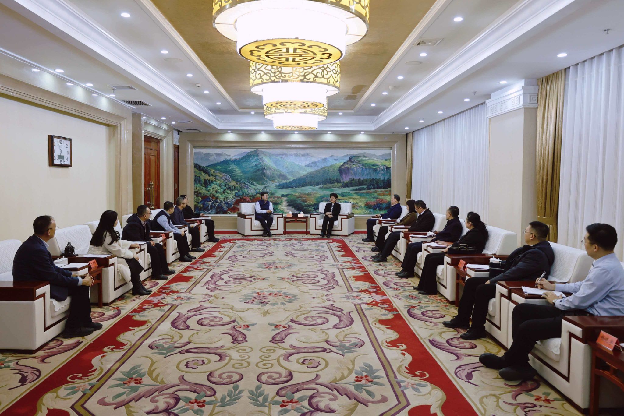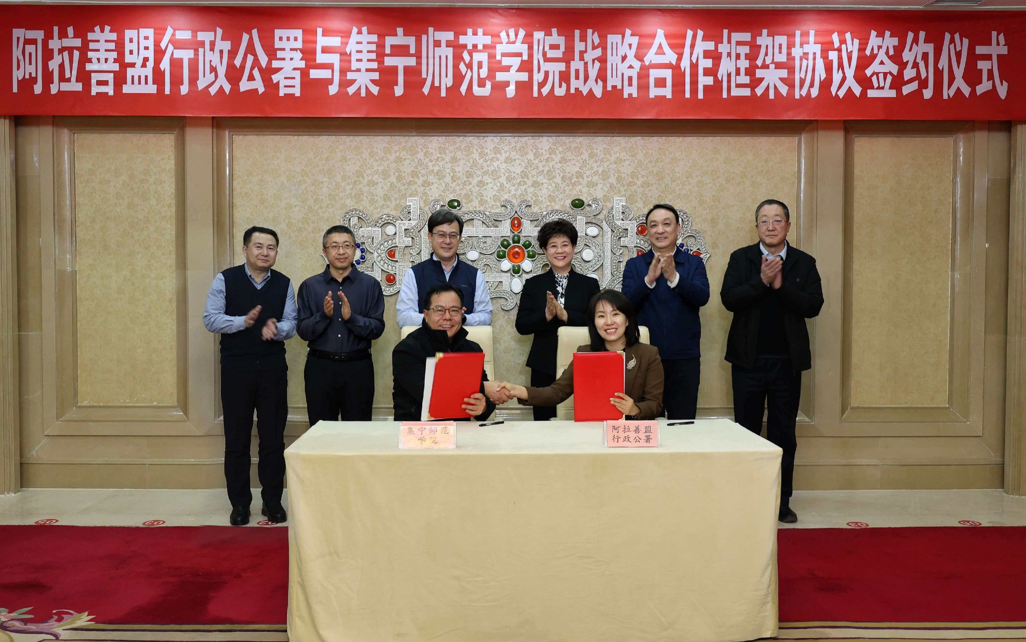 15日下午,张宝成一行与阿拉善盟委书记黄雅丽,盟委副书记、盟长白海林举行会谈。双方围绕人才培养、就业合作、产教融合等方面进行深入交流,并签署《校地战略合作框架协议》,就进一步加强校地协同发展达成共识。