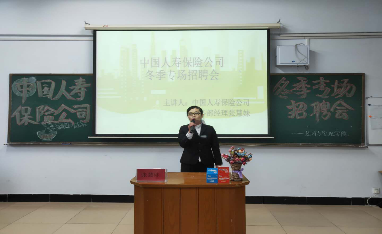 中国人寿保险公司(乌兰察布分公司)冬季专场招聘会上,部门经理张慧妹围绕“保险是怎样的事业”“从事保险行业需要具备怎样的素质”等方面进行了宣讲。她提出,公司需要敢于挑战、勇于尝试、积极向上、有领导力和学习力的人才;可为保险、保险学专业的在校大学生提供实习岗位,并提出了具体的入职方案。