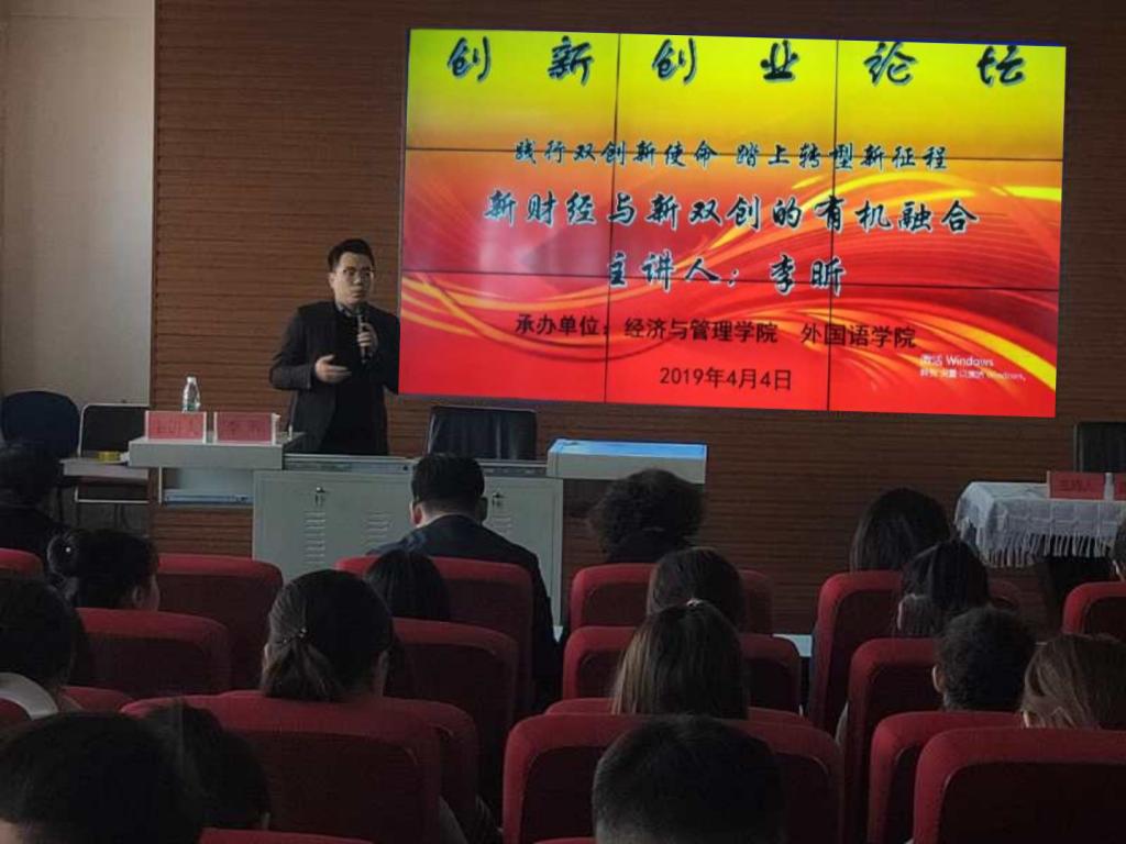 由经管学院和外国语学院共同承办的“新财经与新双创的有机融合”平行论坛,于4月4日上午在泉山校区主教学楼219成功举办。论坛由中联集团教育科技有限公司副总裁李昕主讲,经济与管理学院党总支副书记苗雯娟主持。经管学院和外国语学院100多名师生人参加了论坛。