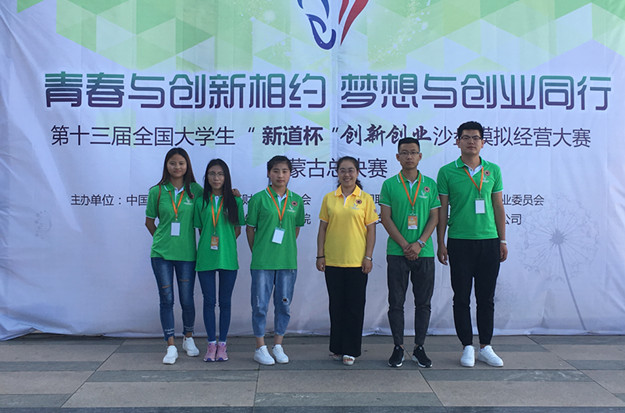 "青春与创新相守,梦想与创业同行",由中国高等教育学会高等财经教育分会和中国职业技术教育学会商科专业委员会主办、呼和浩特职业学院承办、新道科技股份有限公司技术支持的第十三届全国大学生"新道杯"创新创业沙盘模拟经营大赛内蒙古总决赛于6月3日成功举行。
