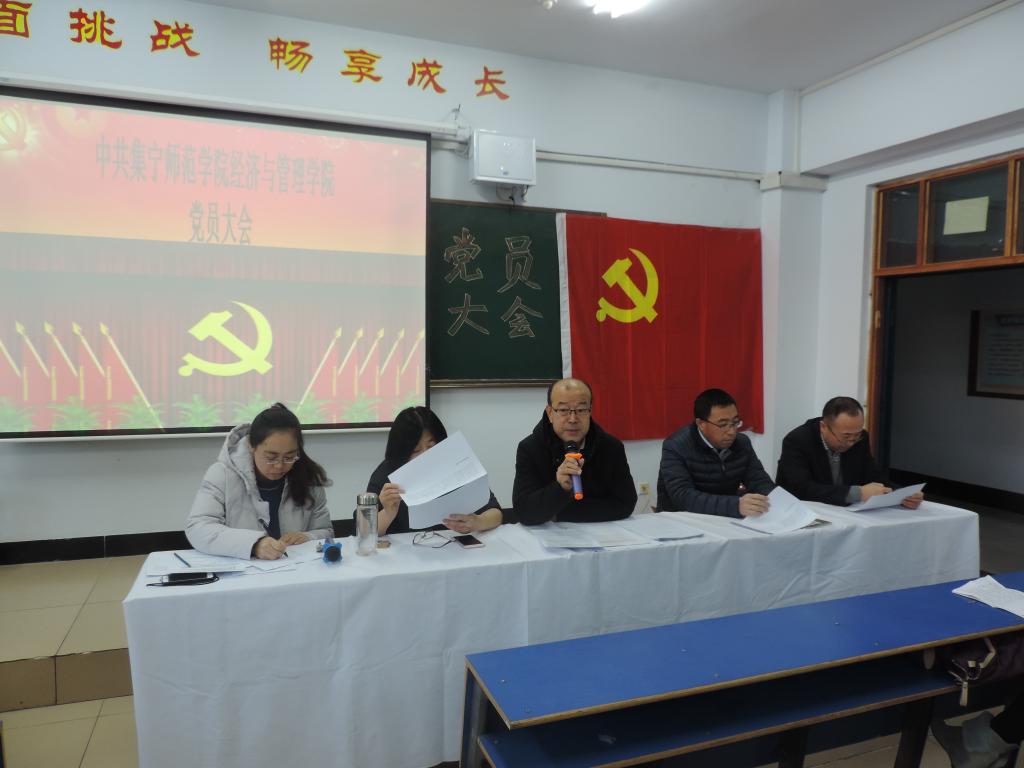 经济与管理学院院党总支于2017年12月18日上午8:00在主教楼218召开全体党员大会。参加此次会议的有经管系党总支书记周关锁、主任刘志贤、党总支副书记张伟、副主任王培青、学生党支部书记张晓利等19名教师党员和5名学生党员以及2017下半年全体重点培养对象和入党积极分子。