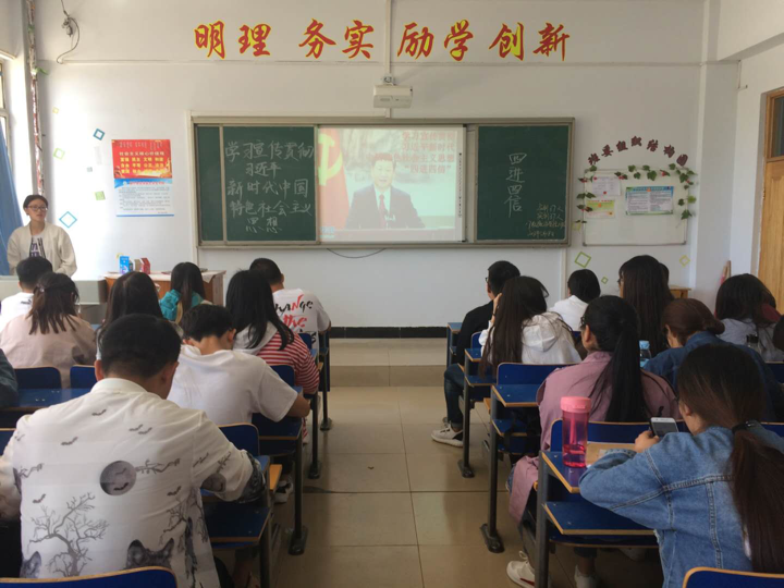 党的十九大将习近平新时代中国特色社会主义思想写入党章,确立为我们党必须长期坚持的指导思想。党有号召,团有行动。经济与管理学院团总支于2018年5月17日下午三点在主教楼218教室深入学习贯彻习近平新时代中国特色社会主义思想,举办“四进四信”主题团日活动。
