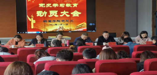 闫闳作动员讲话。强调要提高政治站位,深刻认识党史学习教育的重大意义;要扛起政治责任,确保党史学习教育取得扎实成效;要统一思想,抓好党史学习教育,从党的百年奋斗历程中汲取继续前进的智慧和力量,以更加昂扬的精神状态和奋斗姿态建功新时代、奋进新征程,开创学院各项工作新局面。