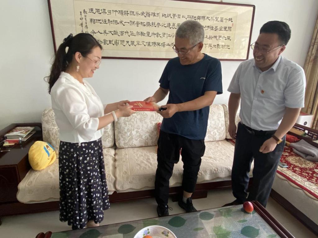 7月2日,经济与管理学院班子成员走访慰问了我院退休老党员田振国同志。在走访慰问中,我院领导与田老师进行了亲切的交谈,同时送上了慰问品和学习资料,将党组织的温暖和关怀送到老党员的心中。最后,田振国老师将亲手书写的字画赠予我院,希望经管院越办越好、为社会培养更多的优秀人才!