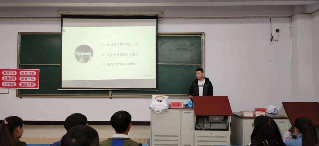 华图教育乌兰察布市分公司经理、我院前学生会主席、2011级会计班学生米强在主教楼201教室为2018级、2019级财务管理及会计专业的学生作了专业指导,围绕学生在校学到的知识、工作时需要的能力、自己的经验与感悟三个问题做出了详尽的分析和经验分享,让同学们了解了当前的就业形势,指明了学习的方向,增强了同学们就业的信心。