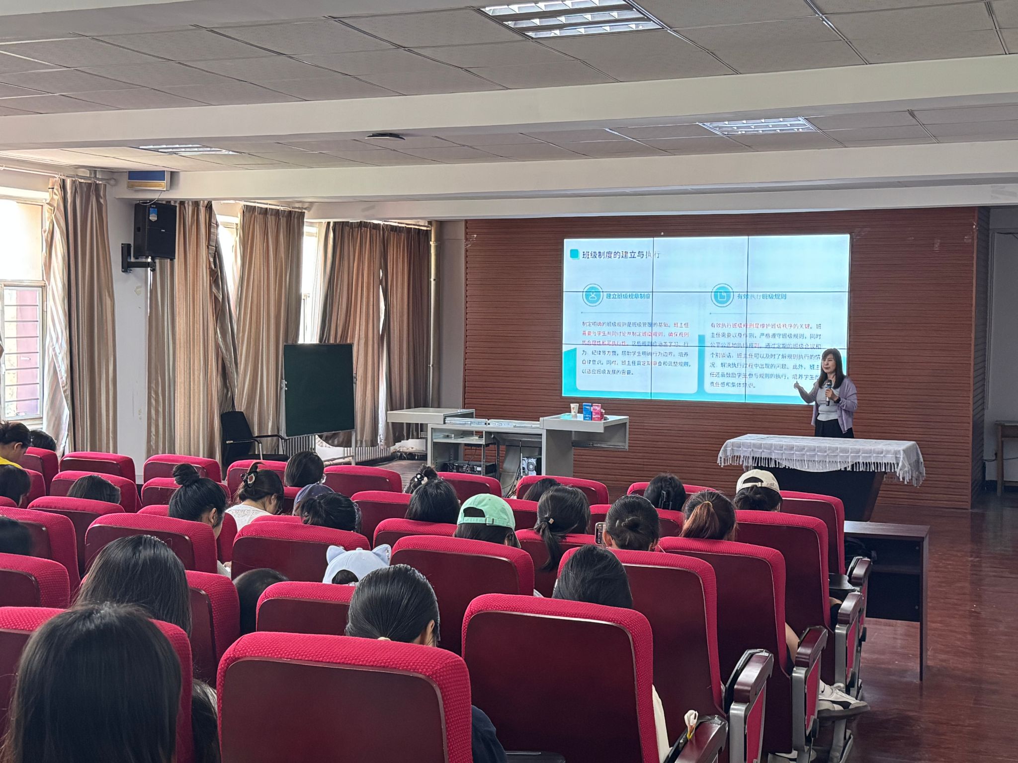 段校长系统梳理了班主任工作的核心维度与实践路径,为提升育人实效提供了扎实的理论支撑与方法指导。讲座不仅明确了班主任作为“引领者”“管理者”“示范者”三重角色的责任内涵,更通过班级管理技能、家校协同机制、文化生态构建等模块,赋能教师形成科学育人体系。尤其在突发事件处置环节,强调预防性管理与应急响应的双重保障机制,凸显了班主任工作的专业性与艺术性。