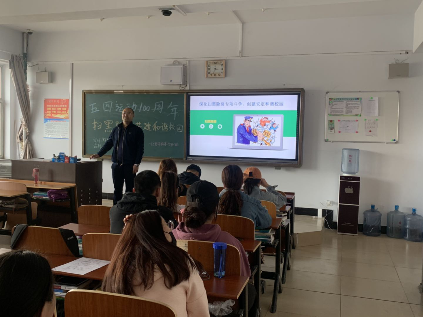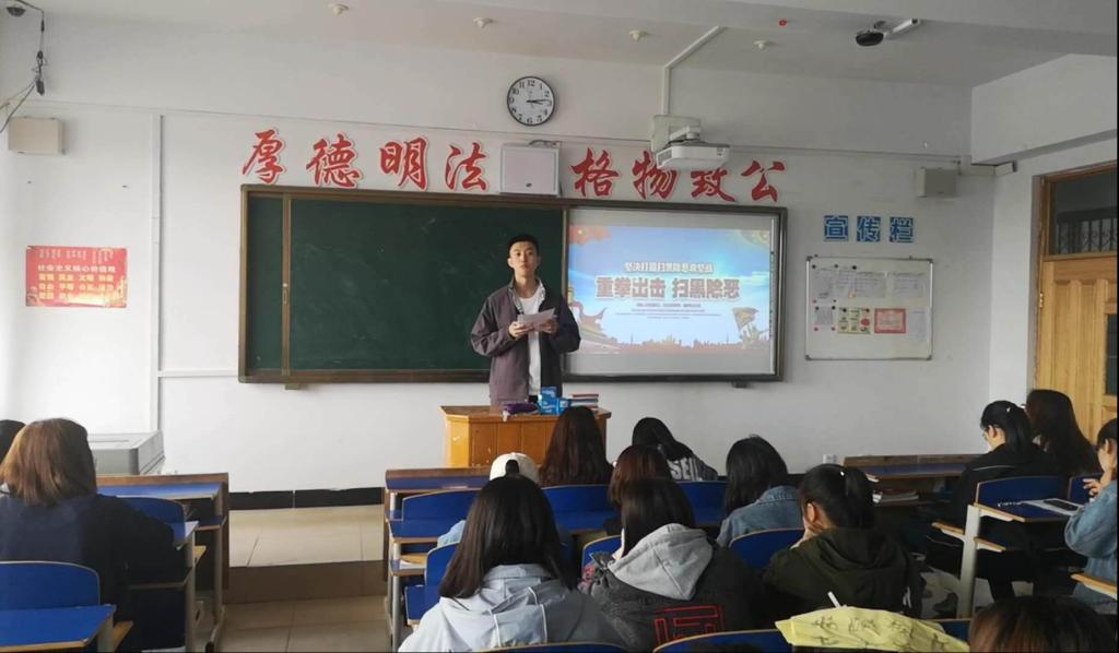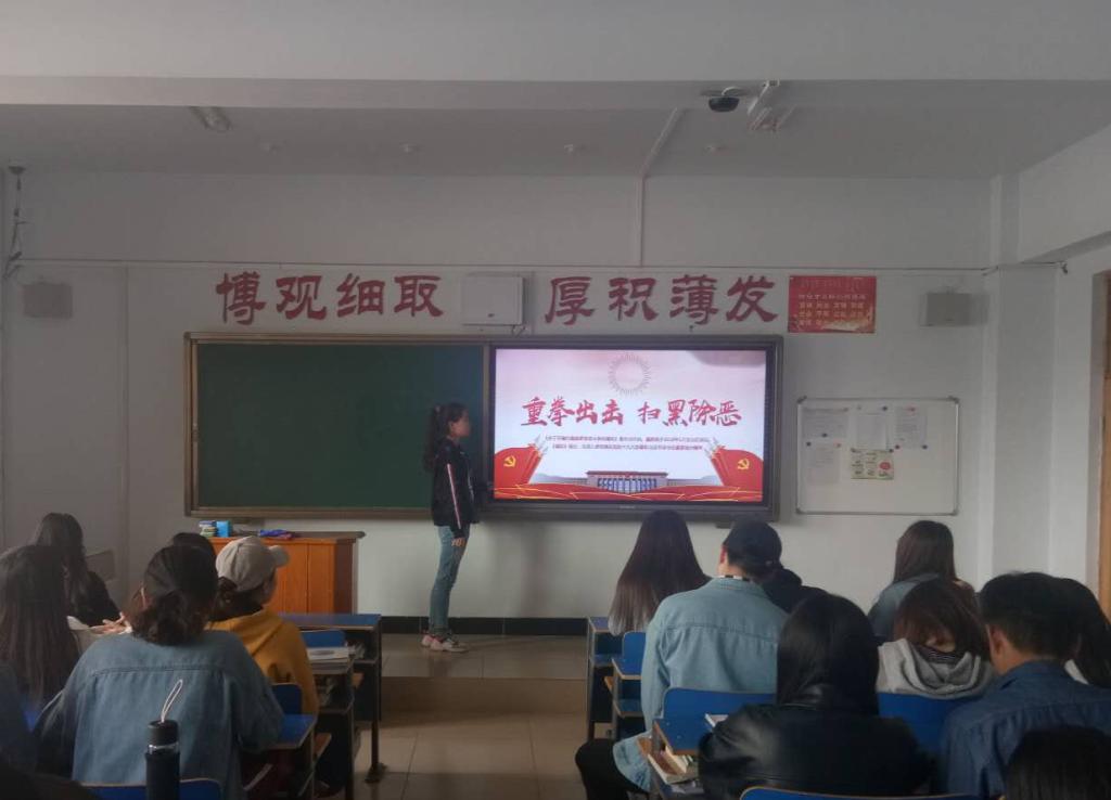 本次主题班会以班级为单位展开,围绕涉及学生切身利益和影响校园治安稳定的热点、难点和突出问题进行了排查和讨论。这次班会使“扫黑除恶”这一主题深入人心,同时通过本次主题班会,同学们对各类安全知识有了更为深入的了解,提高了与黑恶势力作斗争的安全意识和共建“平安校园”的决心。