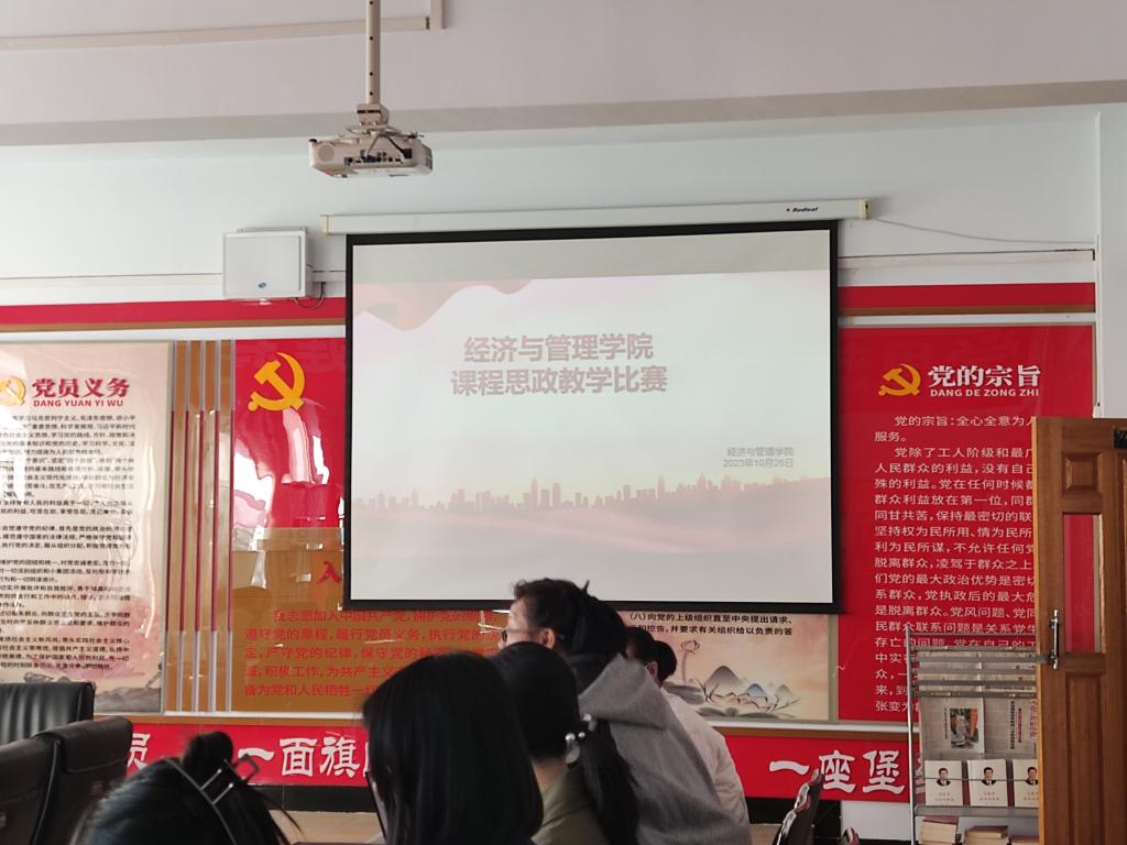 根据内蒙古自治区教育厅《关于举办第三届全区本科高校课程思政教学比赛的通知》(内教高函〔2023〕85 号)文件精神,为进一步贯彻落实教育部《高等学校课程思政建设指导纲要》(教高〔2020〕3号),推进我院课程思政建设,更好发挥教学比赛的示范带动作用,提升教师课程思政教学能力,我院于2023年10月26日主教楼202举办经济与管理学院第三届高校课程思政教学比赛。