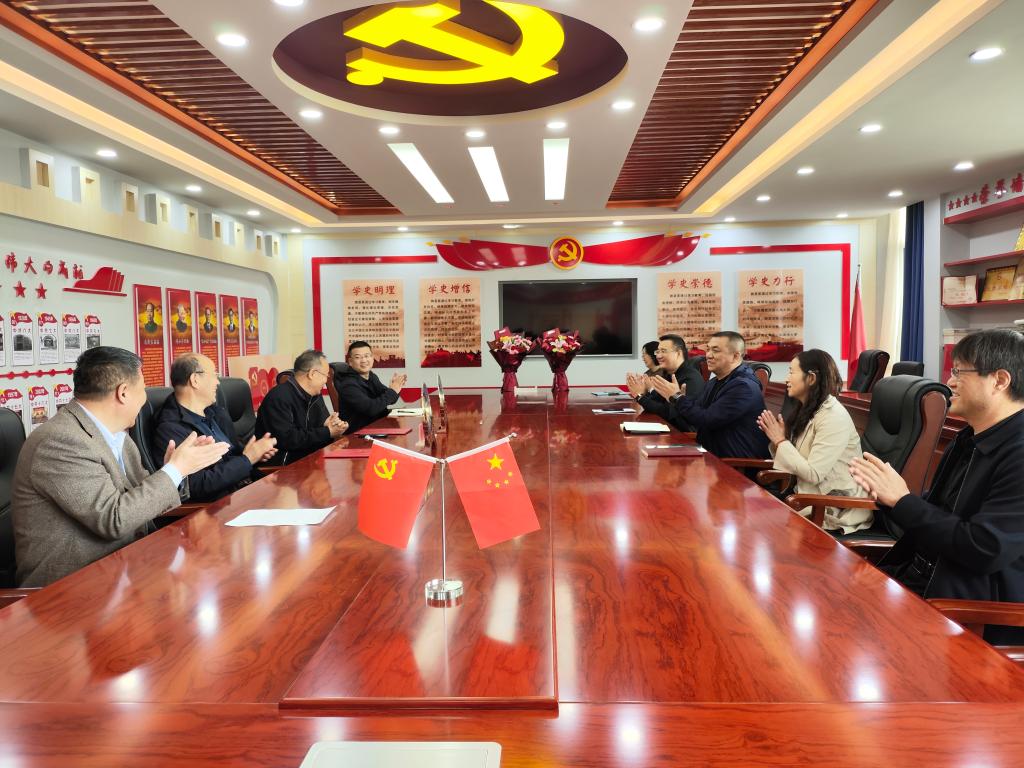 赵向军和唐学明为两位同志献上祝福鲜花,与会人员合影留念。
