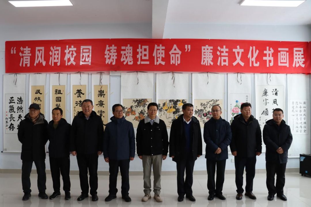 11月27日,校纪委、统战部、工会在泉山校区“职工之家”展厅联合举办“清风润校园 铸魂担使命”铸牢中华民族共同体意识暨党风廉政建设教职工书画展。校党委书记朱玉东,党委副书记李景杰,纪委书记、监察专员赵永军出席,相关部门及部分师生参加。