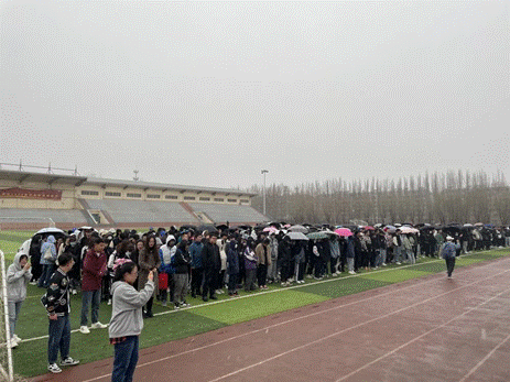 即使是寒风凛凛,参加升旗仪式的师生们依然排成整齐的方队,怀揣着崇高的敬意和无比自豪的心情向国旗行注目礼,向伟大祖国致敬,丝毫不畏严寒。